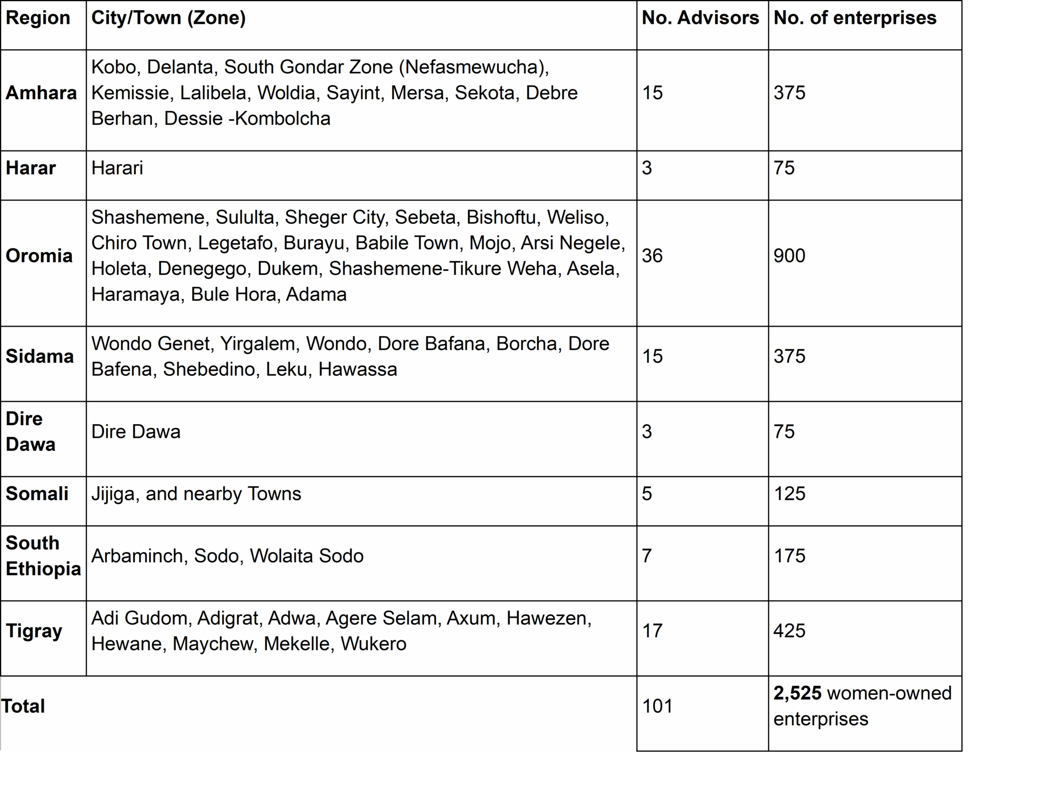 • Demonstrated experience working across multiple regions in Ethiopia, preferably including regional and city administrations.